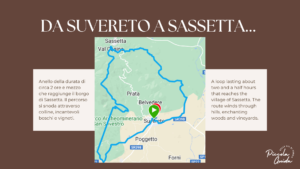 Da qui, la tua avventura ti condurrà verso Suvereto, attraverso strade bianche che attraversano vigneti e uliveti, immergendoti nella bellezza silenziosa della natura. Arrivato a Suvereto, inizia la parte più attesa della tua sfida: le 99Curve. Dicono che siano tante, proprio quelle che dividono il borgo da quello di Sassetta. Questa strada asfaltata, poco trafficata e immersa nel verde dei boschi, ti regalerà un’esperienza unica, soprattutto mentre affronti la salita.
