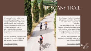 Il Tuscany Trail è molto più di una semplice competizione ciclistica, è un’opportunità unica per mettere alla prova le tue abilità, scoprire paesaggi mozzafiato e immergerti nella cultura e nella storia della Toscana.