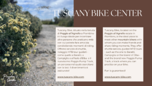 Situato nella tenuta di Poggio all’Agnello a Piombino (LI), il Tuscany Bike Center è il luogo ideale per incontrare altri appassionati di MTB, fare nuove amicizie e condividere momenti di pura adrenalina e divertimento sui sentieri.