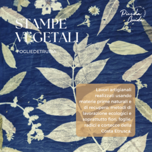 Lavori artigianali realizzati usando materie prime naturali e di recupero, metodi di lavorazione ecologici e soprattutto fiori, foglie, radici e cortecce della Costa Etrusca.